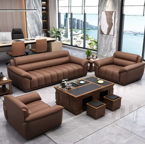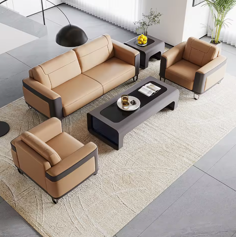 Sang trọng ông chủ Văn phòng sofa đặt khách hàng tiếp nhận hiện đại sofa da với Bàn cà phê đồ nội thất