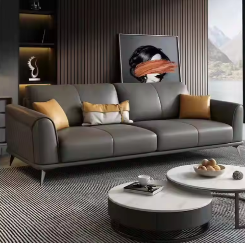 Bộ sofa da hiện đại màu xám hiện đại 1 + 1 + 3 nội thất văn phòng khách sạn căn hộ phòng khách nhà sofa da văn phòng